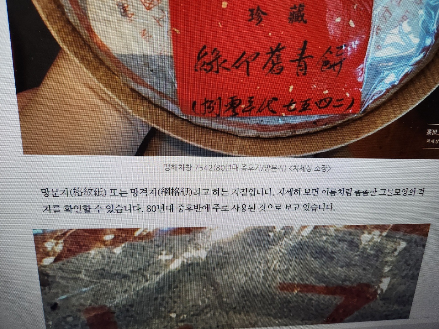 88청병으로 소개되었던 80년대 후반의 맹해차창 88청병입니다. 88년이나 89년을 추정합니다. 망문지 0r 망격지 라고 불리는 포장 종이가 쓰여진 것으로 보아 80년대 후기 88청병(88-91)으로 보입니다. 소장하신 지인을 통해서 1번 시음 할 것을 제공받았습니다.