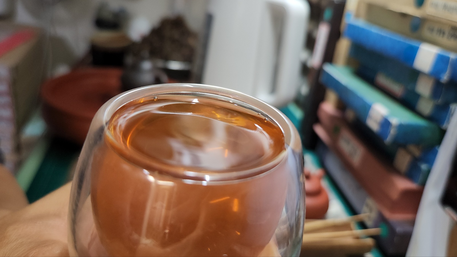 2) 2탕 10초 / 순건창 13년 익어 고삽미가 익어서 오는 신맛이 조금 생겼습니다. 고수차같으면 이정도의 연미를 넣지 않았을 것 같지만, 이차는 야생차라 불가공이 조금 더 된 듯합니다. 그래서 그런가 마시기 편합니다.